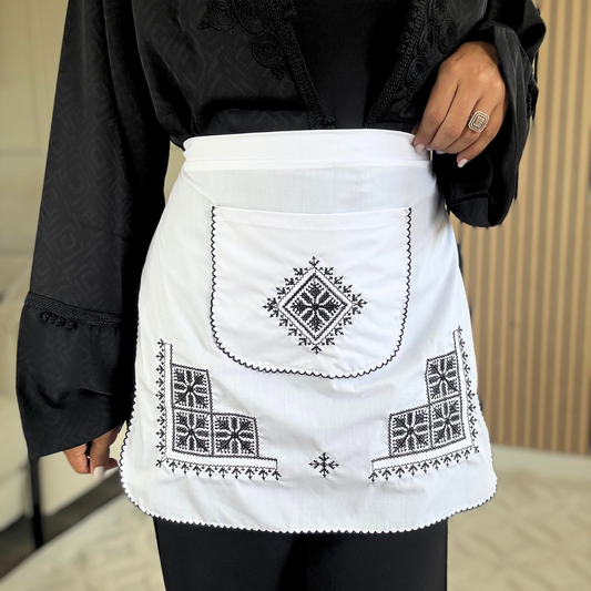 Tablier Noir sur Blanc – L’élégance du Tarz El Fassi