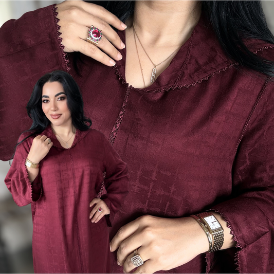 Jellaba Randa Bordeaux – Élégance Intemporelle