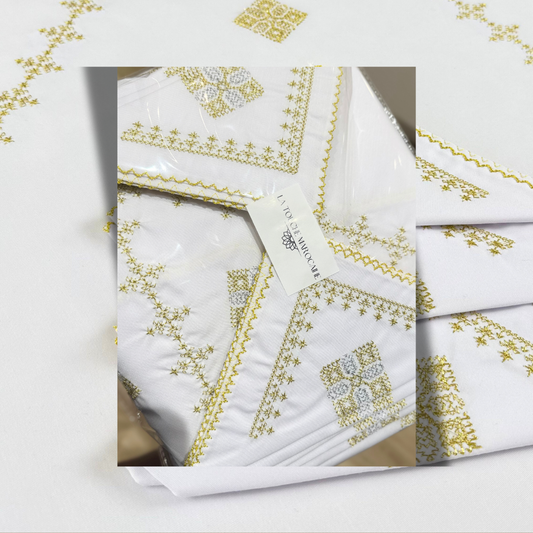 C'est une pièce brodée avec soin, symbole d'élégance et de transmission, qui raconte notre héritage marocain au coeur même de la cuisine.