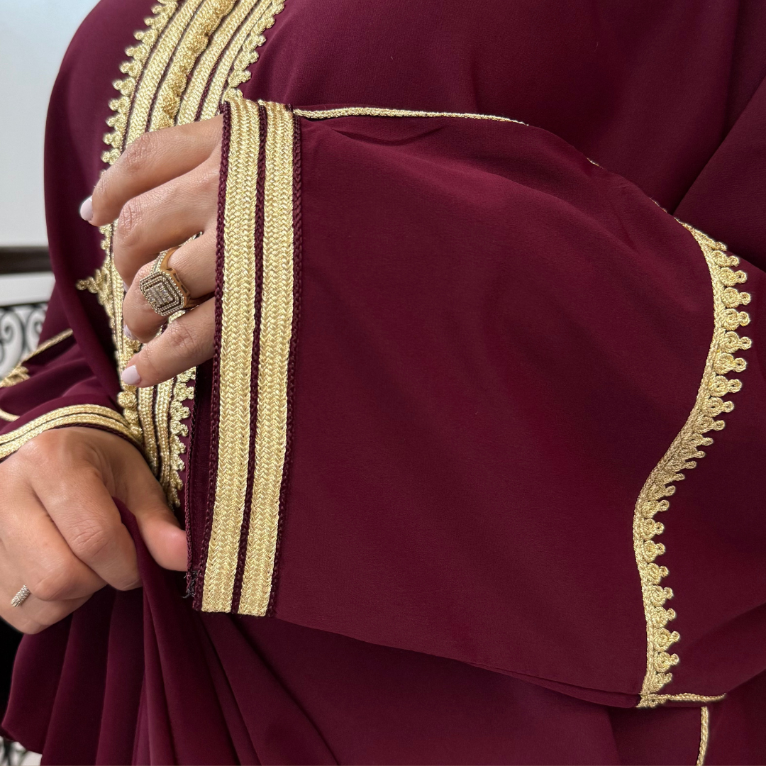 Par respect du tissu et du travail artisanal, toutes les tenues traditionnelles marocaines — notamment celles travaillées en Randa ou en sfifa — doivent être lavées à la main uniquement, à l’eau froide ou tiède, sans frottement excessif.