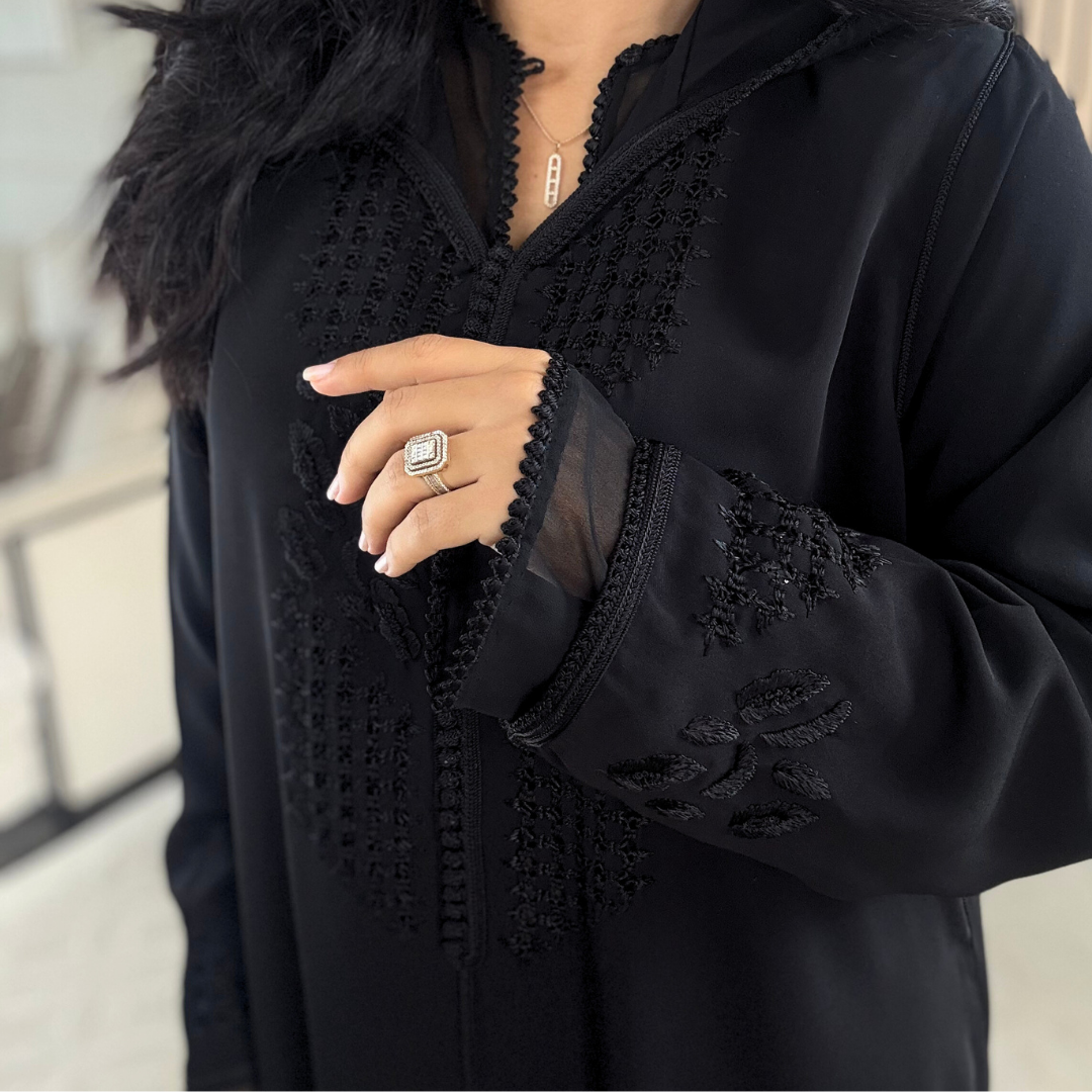 Un chef-d’œuvre de l’artisanat marocain, sublimé par la broderie Masloul, une technique traditionnelle qui sculpte le tissu à travers des motifs ajourés et en relief, réalisés à la main.