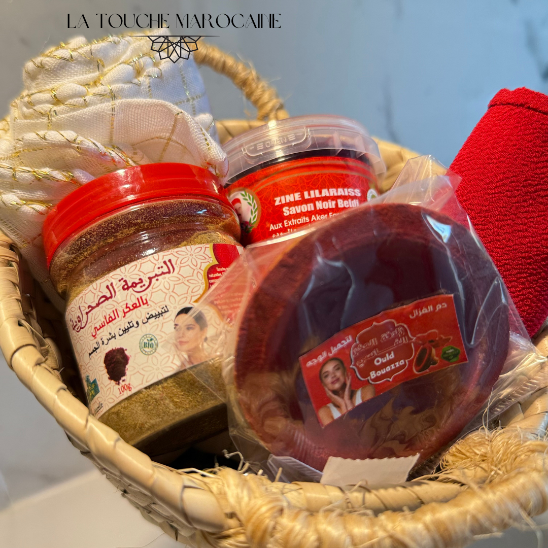 Redécouvrez l’art du hammam marocain à la maison avec ce coffret complet, inspiré des rituels de beauté transmis de génération en génération. Chaque pack associe des soins naturels incontournables – savon noir beldi, tabrima, Akaar El Fassi ou Nila – avec les accessoires traditionnels pour transformer votre salle de bain en véritable hammam.